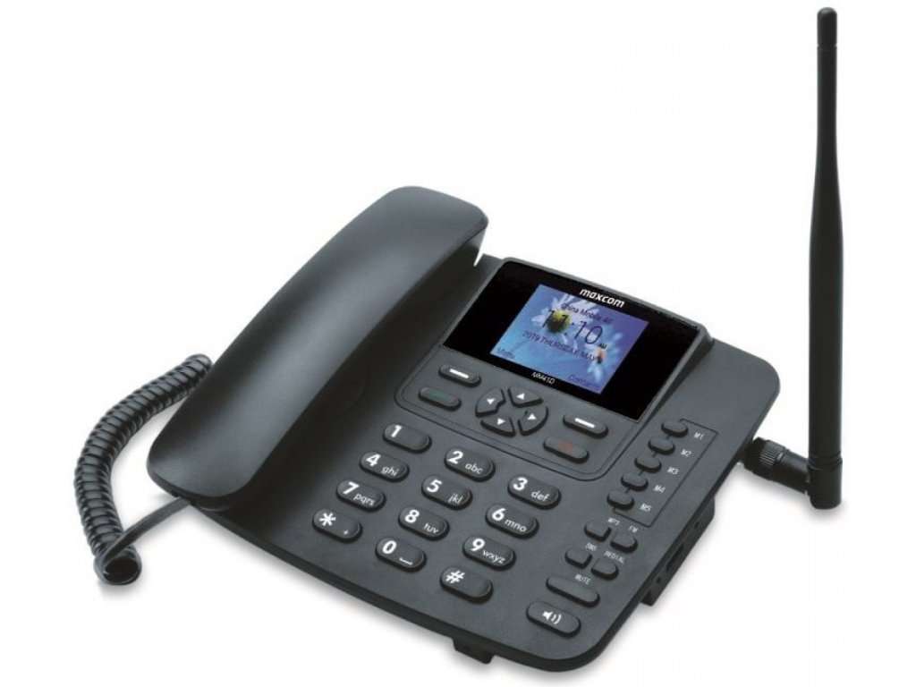 Stolný telefón, ktorý vás bude sprevádzať kdekoľvek - Maxcom MM41D je GSM telefón s podperou 4G SIM karty. Je vybavený monochromatickým displejom s podsvietením 124 x 64 pixelov, jednoduchým rozhraním s veľmi intuitívnym menu a veľkými klávesmi. Pracuje s mnohými sieťami: GSM 900/1800 MHz, WCDMA 900/2100 MHz a LTE. Výhodou tohto telefónu je, že ho nepotrebujete pripájať k telefónnej sieti ale môžete ho používať so SIM kartou a zároveň využívať výhody niektorých mobilných taríf.